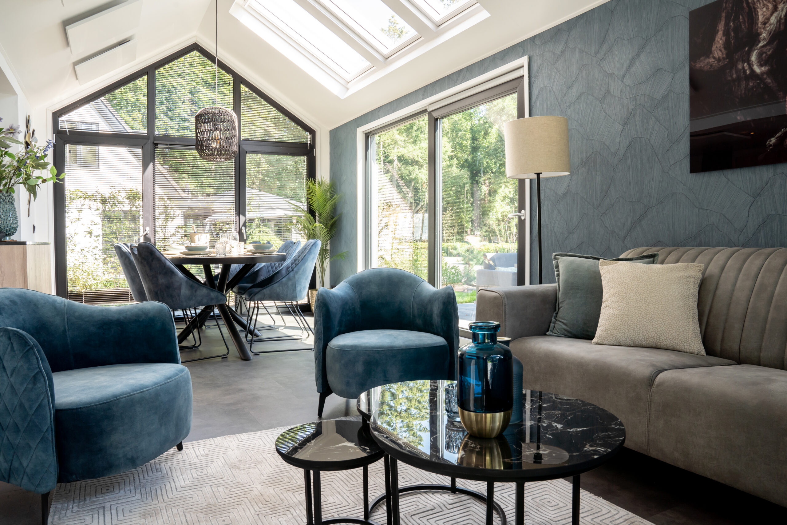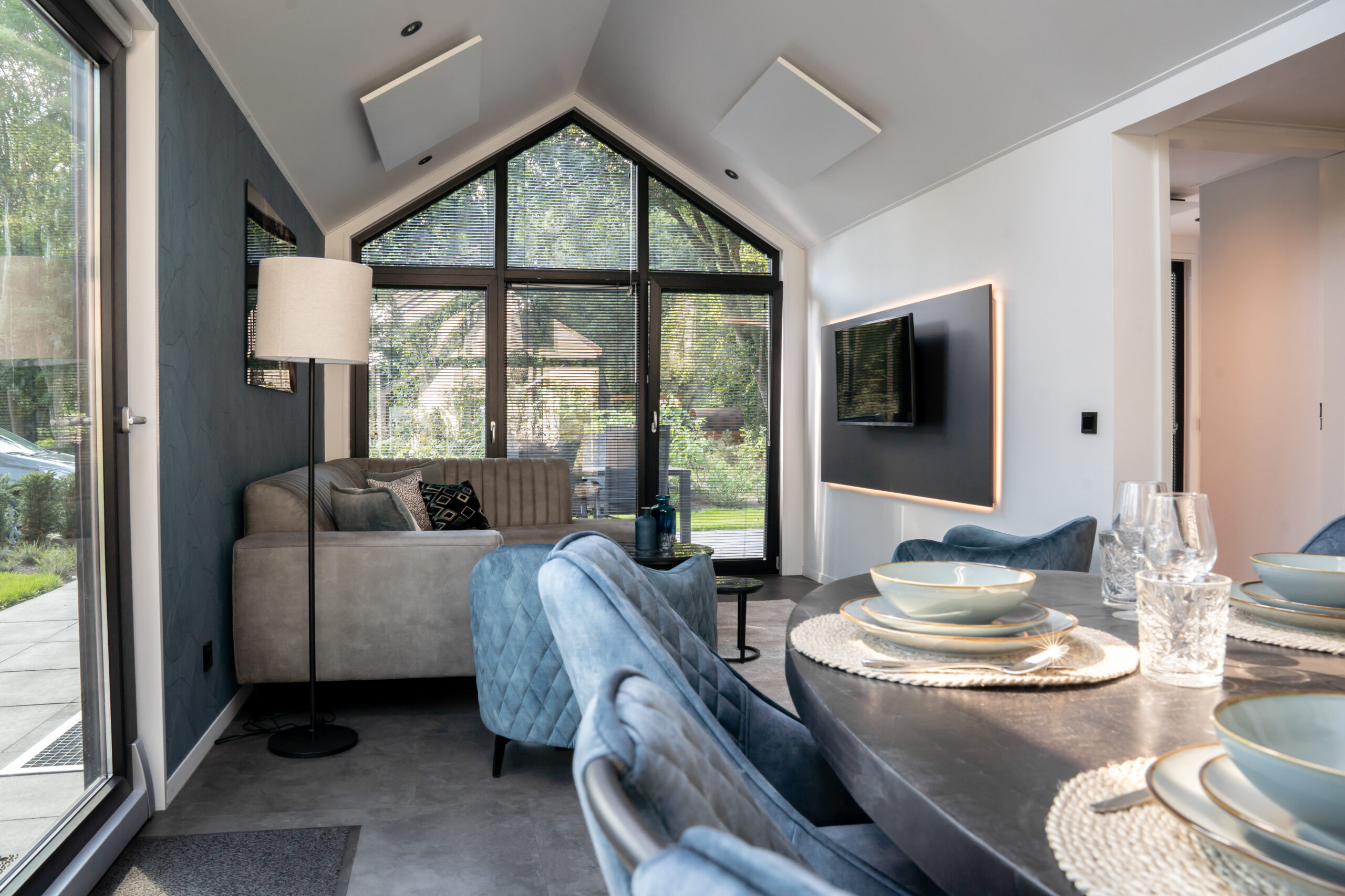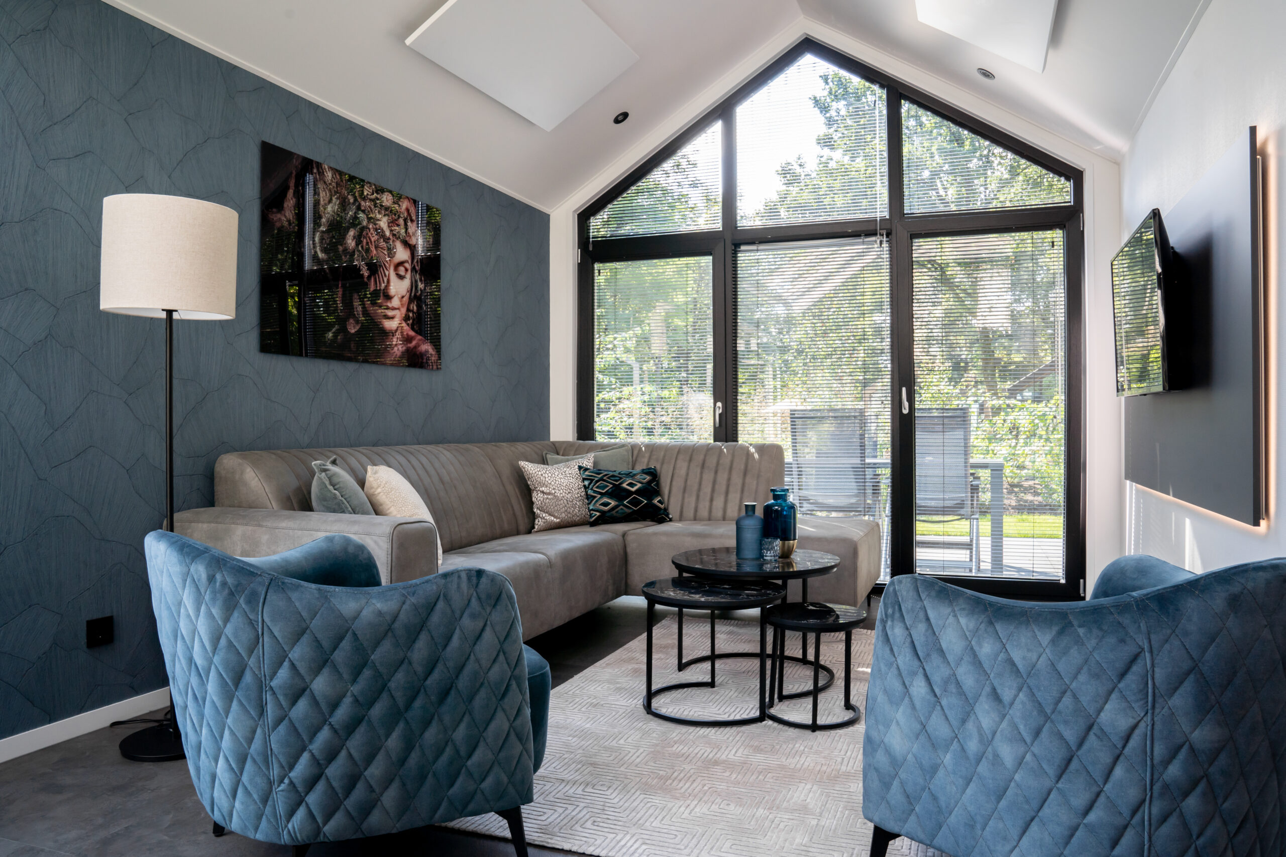 De vakantiewoning straalt rust, frisheid en comfort uit. De blauwtinten creëren een gevoel van kalmte en sereniteit, terwijl ze tegelijkertijd een vleugje levendigheid en frisheid toevoegen. Dankzij de overvloedige lichtinval in de woning kun je genieten van het prachtige uitzicht op het park. We hebben de volledige interieurinrichting verzorgd voor deze vakantiewoning, van begin tot eind. De ligging van de vakantiewoning is zeer gunstig, vlakbij Paleis Soestdijk, Nationaal Park Utrechtse Heuvelrug en de Loosdrechtse plassen.
