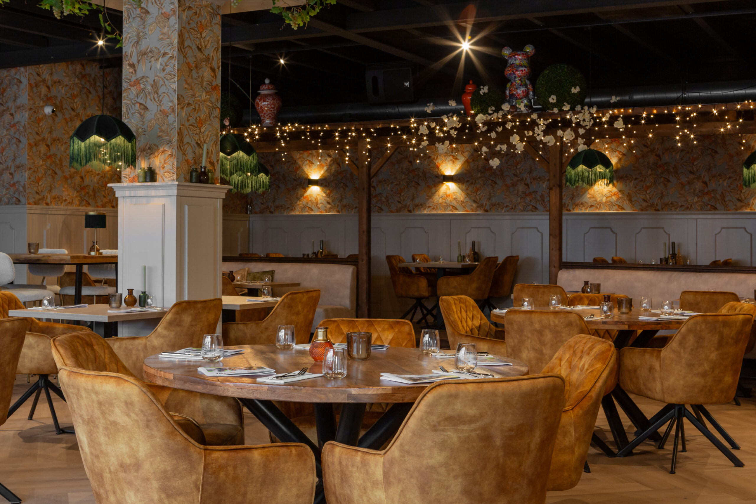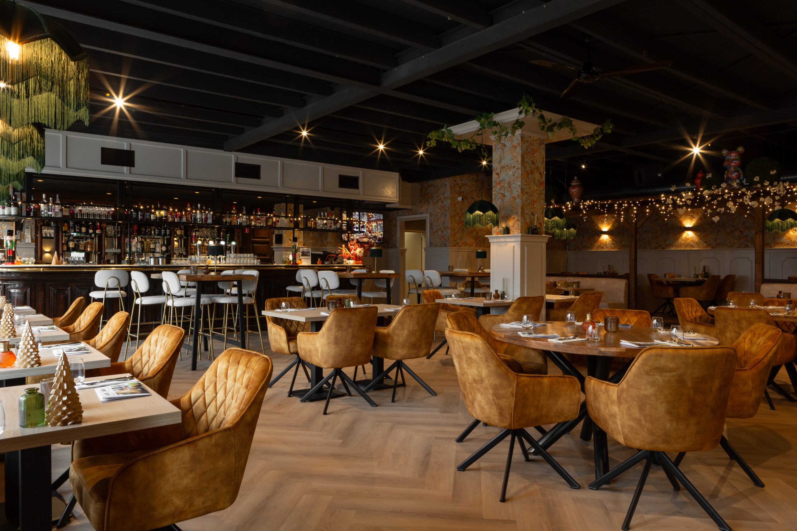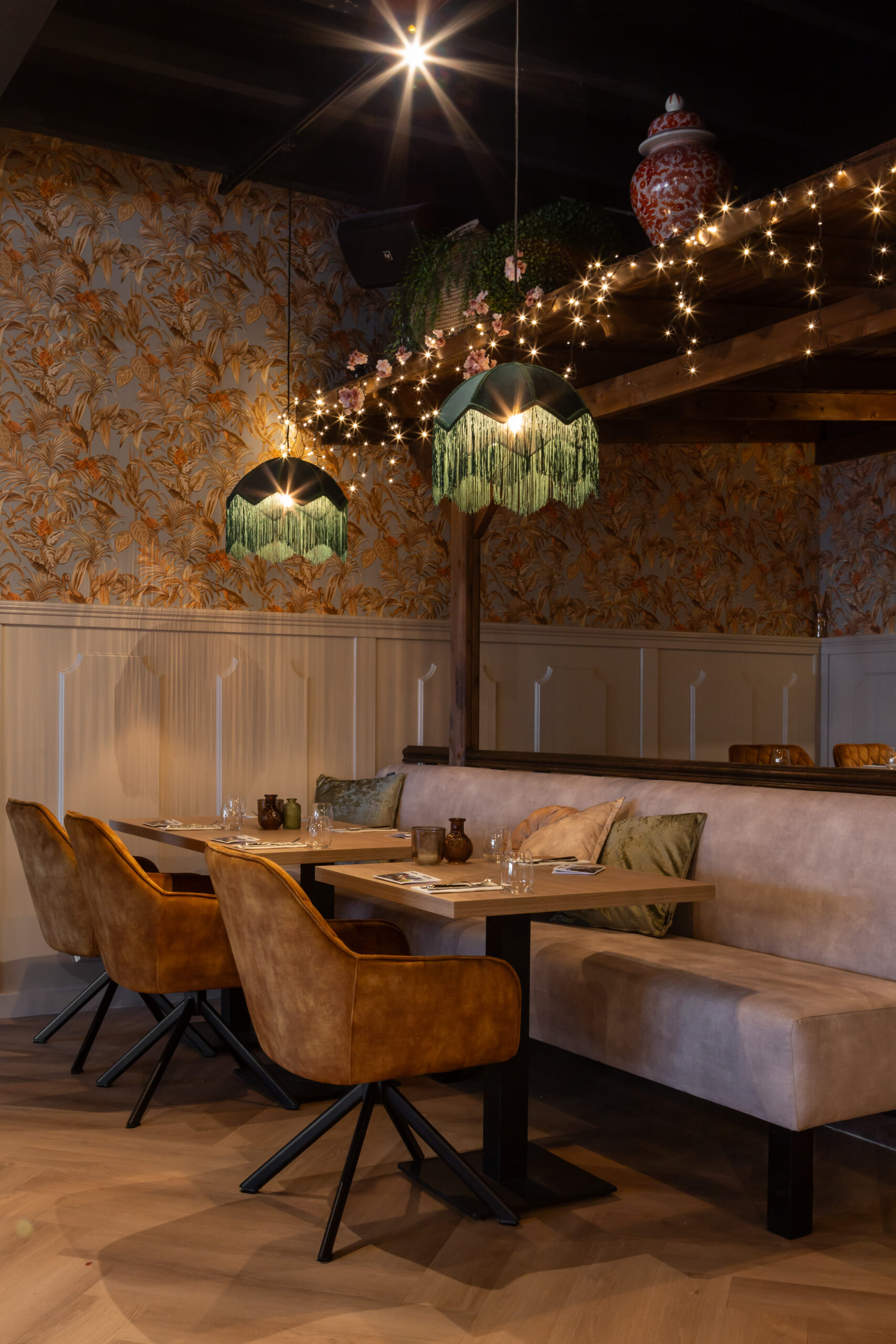 We hebben met trots het interieur van Restaurant Het Gelloo helemaal omgetoverd voor de feestdagen! In minder dan 3 weken hebben we een prachtig, warm en kleurrijk resultaat neergezet. Van de vloer tot het behang, de meubels, verlichting en natuurlijk de afstyling – alles is zorgvuldig uitgekozen om een uitnodigende en sfeervolle ambiance te creëren.