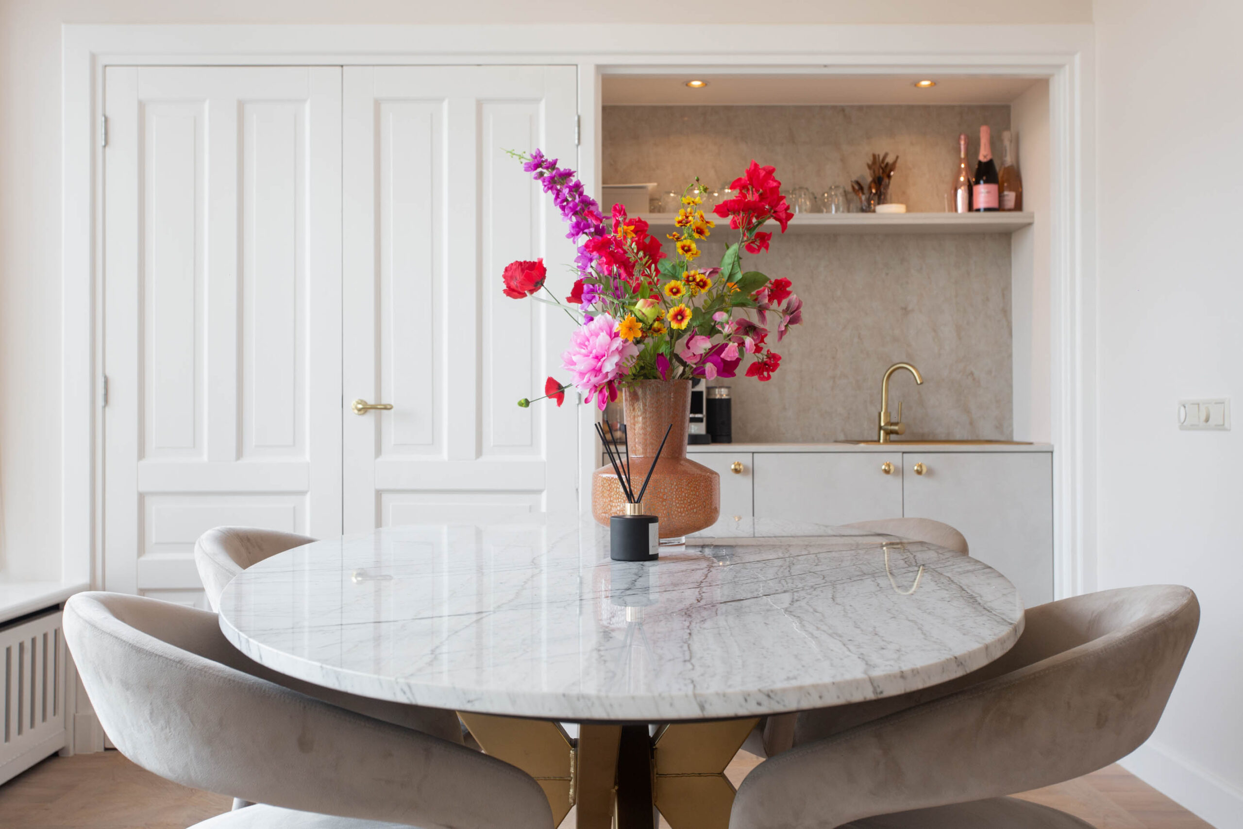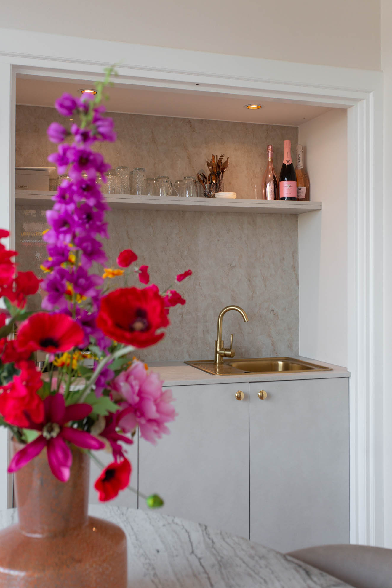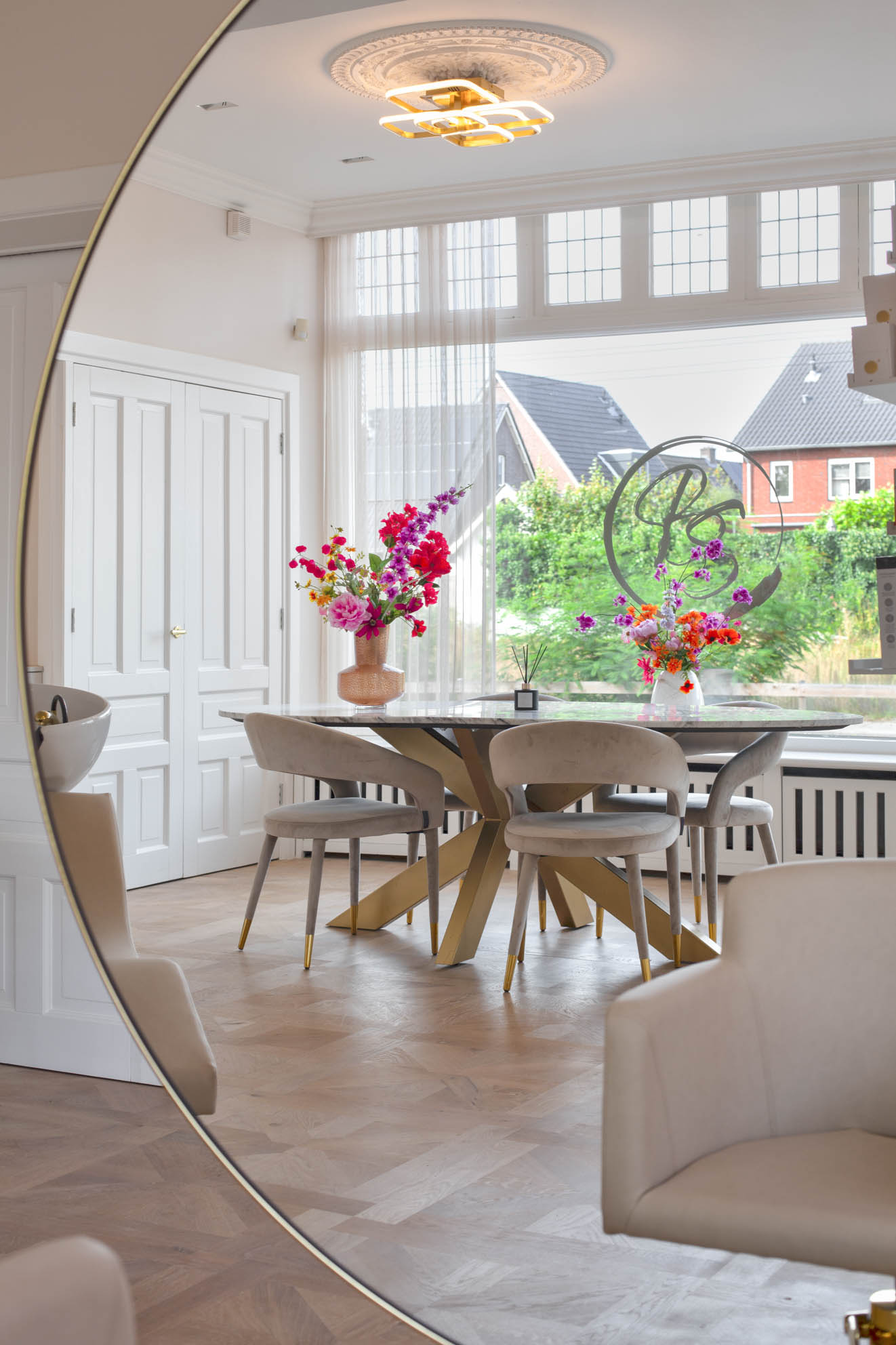 Voor Beautysalon Oosterbeek hebben we gebruikgemaakt van de elegantie van beige tinten. Dit neutrale kleurenpalet creëert een rustgevende achtergrond die perfect harmonieert met diverse stijlen en esthetiek. Beige straalt warmte uit en draagt bij aan een kalme atmosfeer in de ruimte, in lijn met de wensen van onze klant. We hebben de prachtige houten vloer opnieuw opgeschuurd om deze nieuw leven in te blazen. De champagnekleurige vitrage voegt een vleugje luxe toe aan het interieur, zonder overdreven opvallend te zijn, en zorgt ervoor dat het natuurlijke licht de kamer binnenvalt en een warme gloed verspreidt.