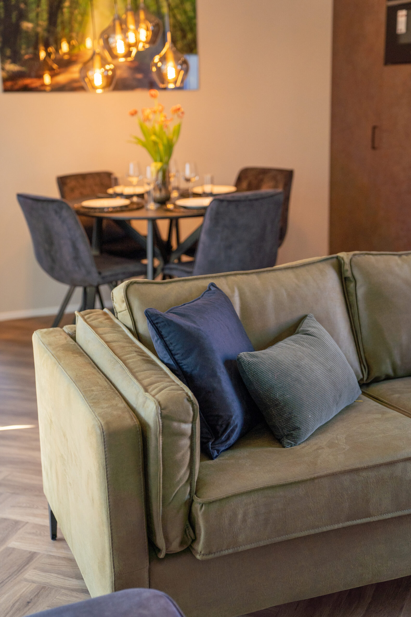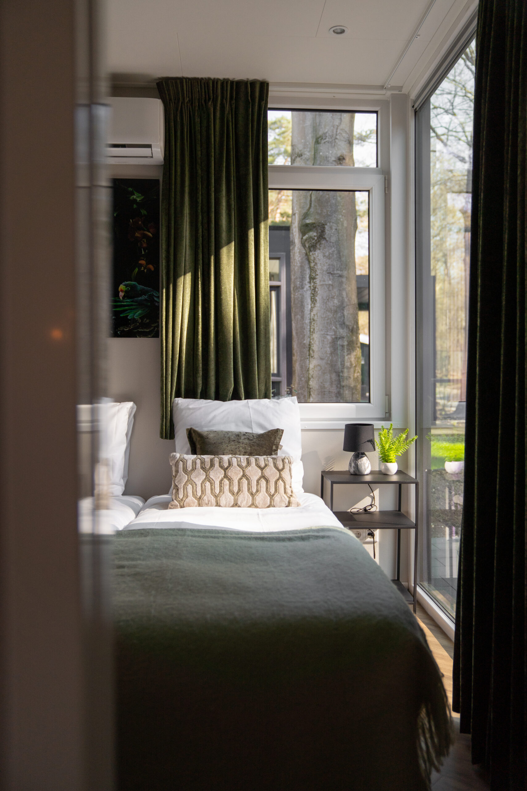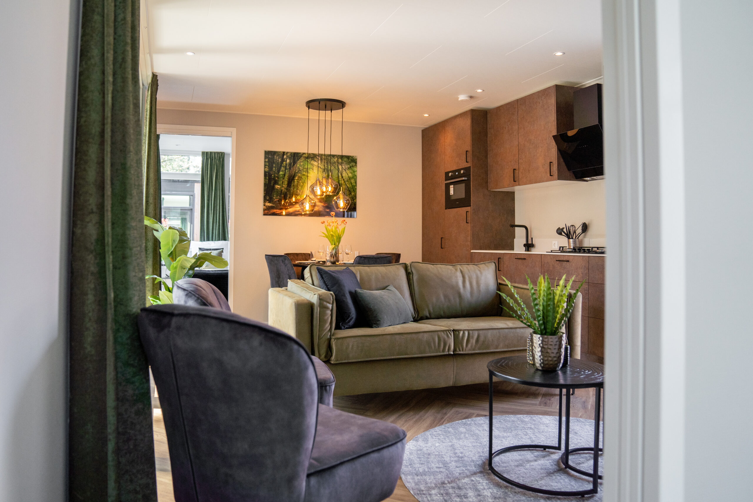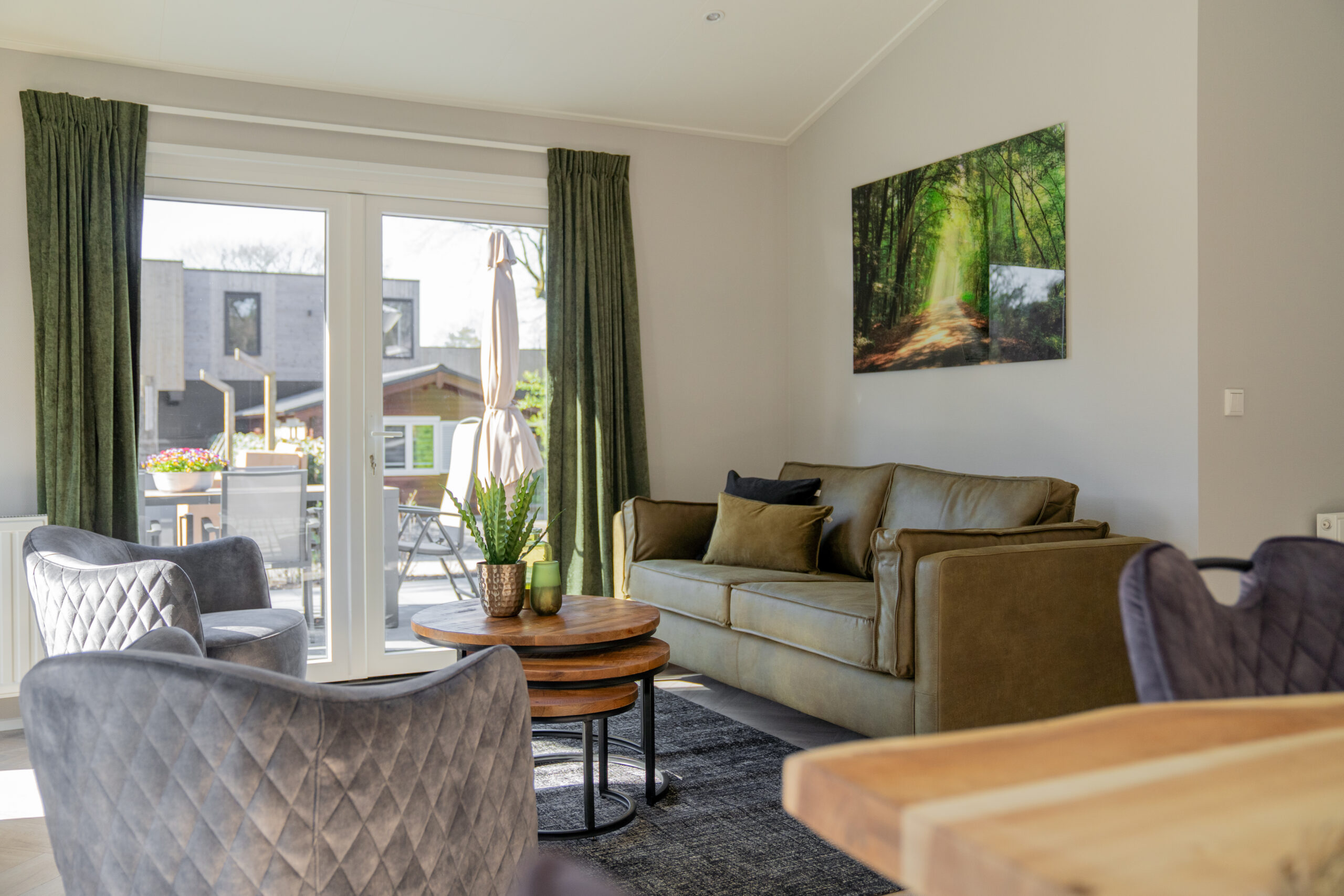 Het interieur van deze vakantiewoning is ontworpen met levendige kleuren die perfect passen bij de omgeving. De warme groentinten sluiten naadloos aan op de ligging van de woning, met directe toegang tot de prachtige Veluwse bossen. Deze diverse tinten groen hebben een positief effect op mensen. Groen staat namelijk bekend om het gevoel van rust en kalmte dat het kan geven. Tegelijkertijd kan het ook een gevoel van vernieuwing en vitaliteit opwekken, waardoor mensen zich energieker en levendiger voelen. Kortom, deze vakantiewoning is een plek waar je heerlijk kunt genieten en volledig tot jezelf kunt komen.